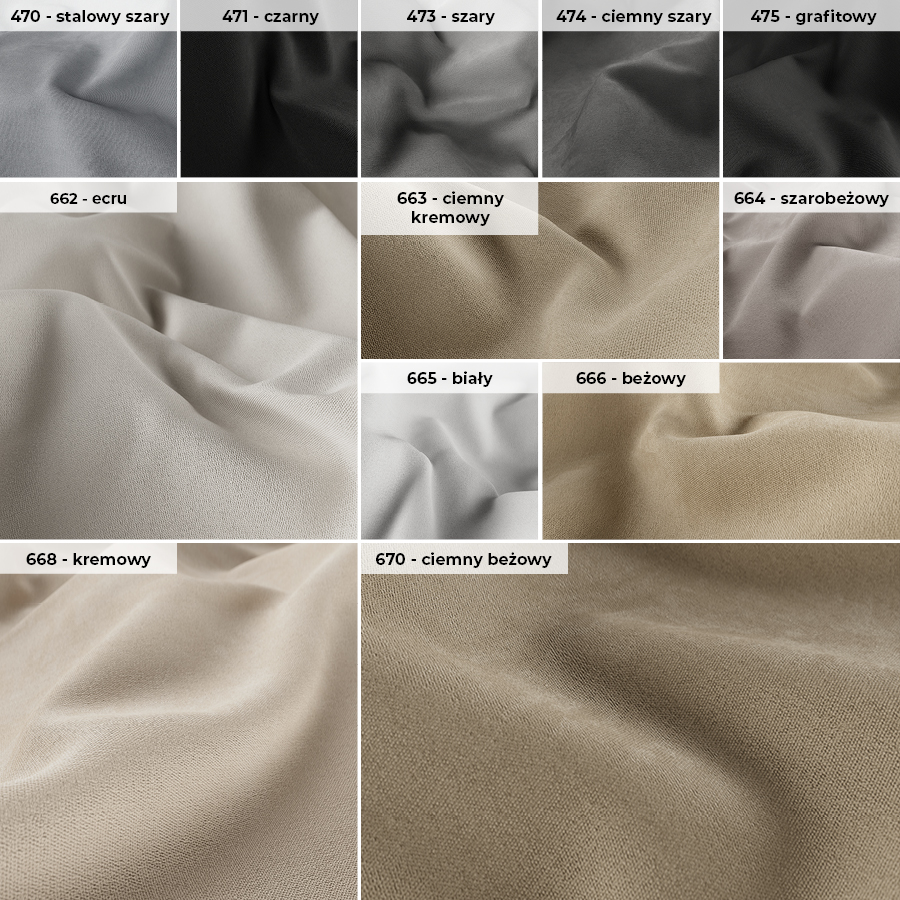 Uwaga: Rzeczywisty kolor produktu może różnić się od prezentowanego na ekranie. Może to wynikać z ustawień monitora, technologii wyświetlania lub warunków wykonania zdjęcia. W celu dobrania odpowiedniego odcienia zalecamy zamówienie próbki tkaniny.