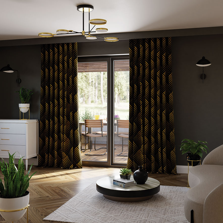 Tkanina na zasłony na podkładzie BLACKOUT, która wyróżnia się unikatowym i eleganckim wzorem. Ta wyjątkowa tkanina nie tylko doskonale zaciemnia pomieszczenie, zapewniając komfort i prywatność, ale także stanowi stylowy element dekoracyjny, który doda wnętrzu wyrafinowanego charakteru. Dzięki specjalnemu podkładowi BLACKOUT, tkanina skutecznie blokuje światło, co czyni ją idealnym wyborem do sypialni, salonów oraz innych przestrzeni, gdzie istotna jest kontrola nad ilością naturalnego światła. Elegancki wzór tkaniny dodaje jej wyjątkowości, sprawiając, że zasłony stają się kluczowym elementem aranżacji wnętrza.