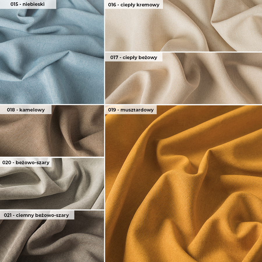 Uwaga: Rzeczywisty kolor produktu może różnić się od prezentowanego na ekranie. Może to wynikać z ustawień monitora, technologii wyświetlania lub warunków wykonania zdjęcia. W celu dobrania odpowiedniego odcienia zalecamy zamówienie próbki tkaniny.