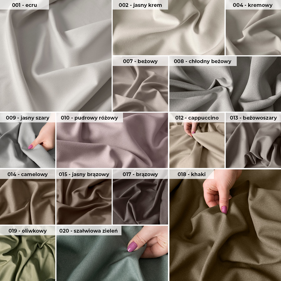 Uwaga: Rzeczywisty kolor produktu może różnić się od prezentowanego na ekranie. Może to wynikać z ustawień monitora, technologii wyświetlania lub warunków wykonania zdjęcia. W celu dobrania odpowiedniego odcienia zalecamy zamówienie próbki tkaniny.