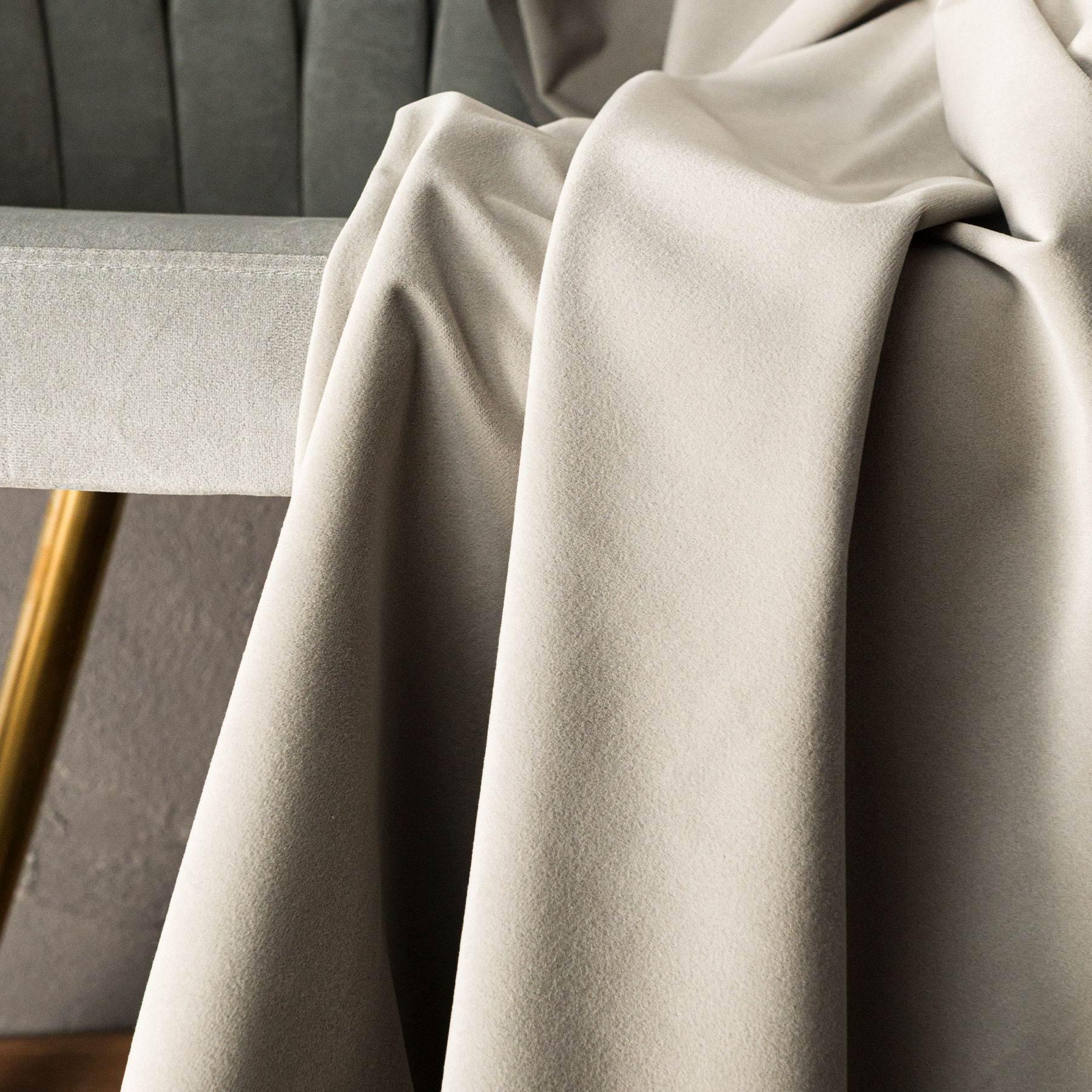 Tkanina Velvet Matt to materiał zasłonowy o grubej, welwetowej strukturze i eleganckim, matowym wykończeniu. Dzięki swojej miękkości i plastyczności doskonale się układa, tworząc efektowne, równomierne fałdy, które nadają wnętrzu luksusowego charakteru.