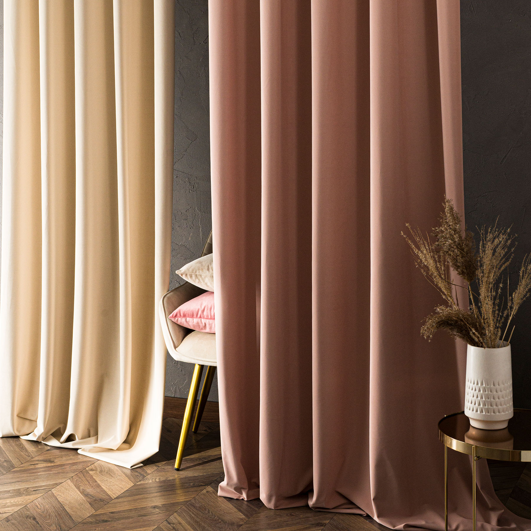 Tkanina Velvet Matt to materiał zasłonowy o grubej, welwetowej strukturze i eleganckim, matowym wykończeniu. Dzięki swojej miękkości i plastyczności doskonale się układa, tworząc efektowne, równomierne fałdy, które nadają wnętrzu luksusowego charakteru.
