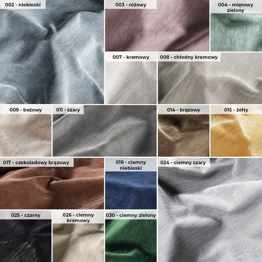 Uwaga: Rzeczywisty kolor produktu może różnić się od prezentowanego na ekranie. Może to wynikać z ustawień monitora, technologii wyświetlania lub warunków wykonania zdjęcia. W celu dobrania odpowiedniego odcienia zalecamy zamówienie próbki tkaniny.