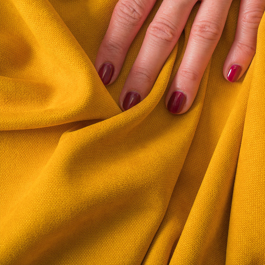 - Materiał: 100% poliester o strukturze przypominającej welur, ale o gładkiej, matowej powierzchni, co zapewnia elegancki, nowoczesny wygląd i trwałość tkaniny, idealną do codziennego użytku.