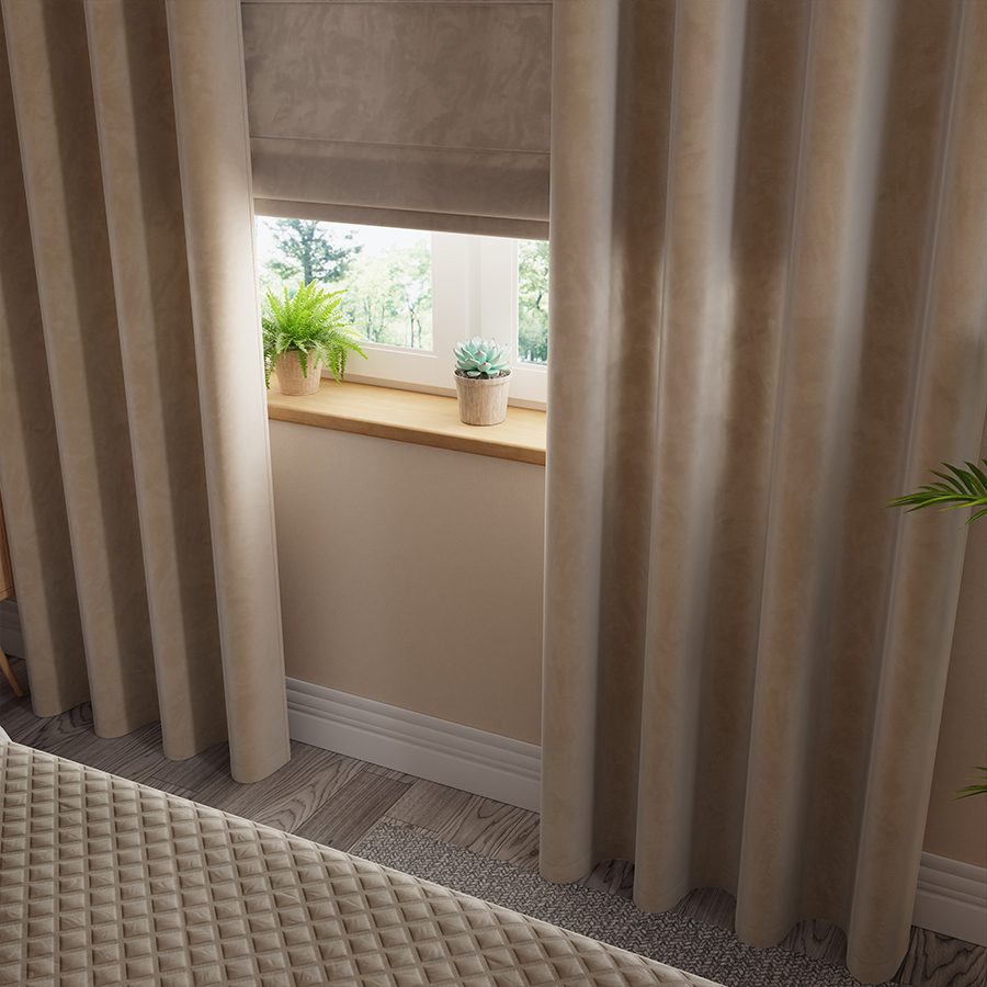 ZASŁONA GOTOWA NA PRZELOTKACH AKSAMIT VELVI 140×160 ciemny beż