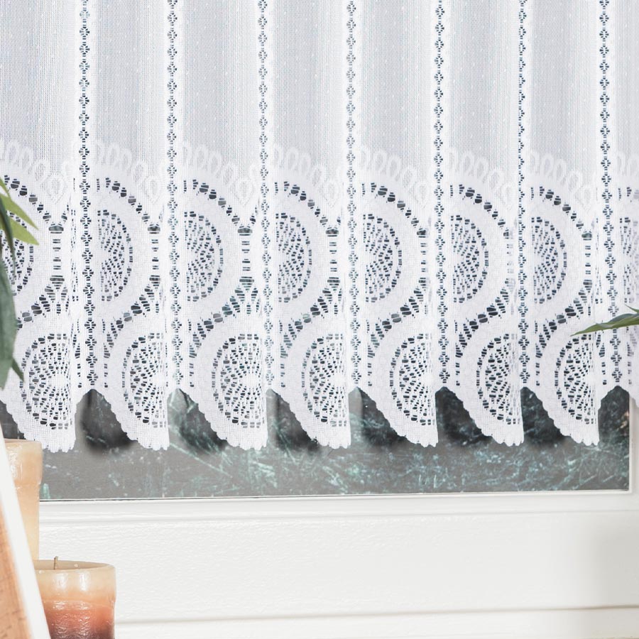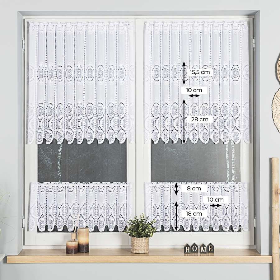 Tkanina żakardowa, z której wykonana jest ta firanka, charakteryzuje się wysoką jakością i trwałością. Jest ona delikatna w dotyku, co sprawia, że firanka prezentuje się bardzo elegancko i subtelnie. Dodatkowo, tkanina ta jest łatwa w utrzymaniu czystości, co pozwala na długotrwałe zachowanie jej pierwotnego wyglądu.