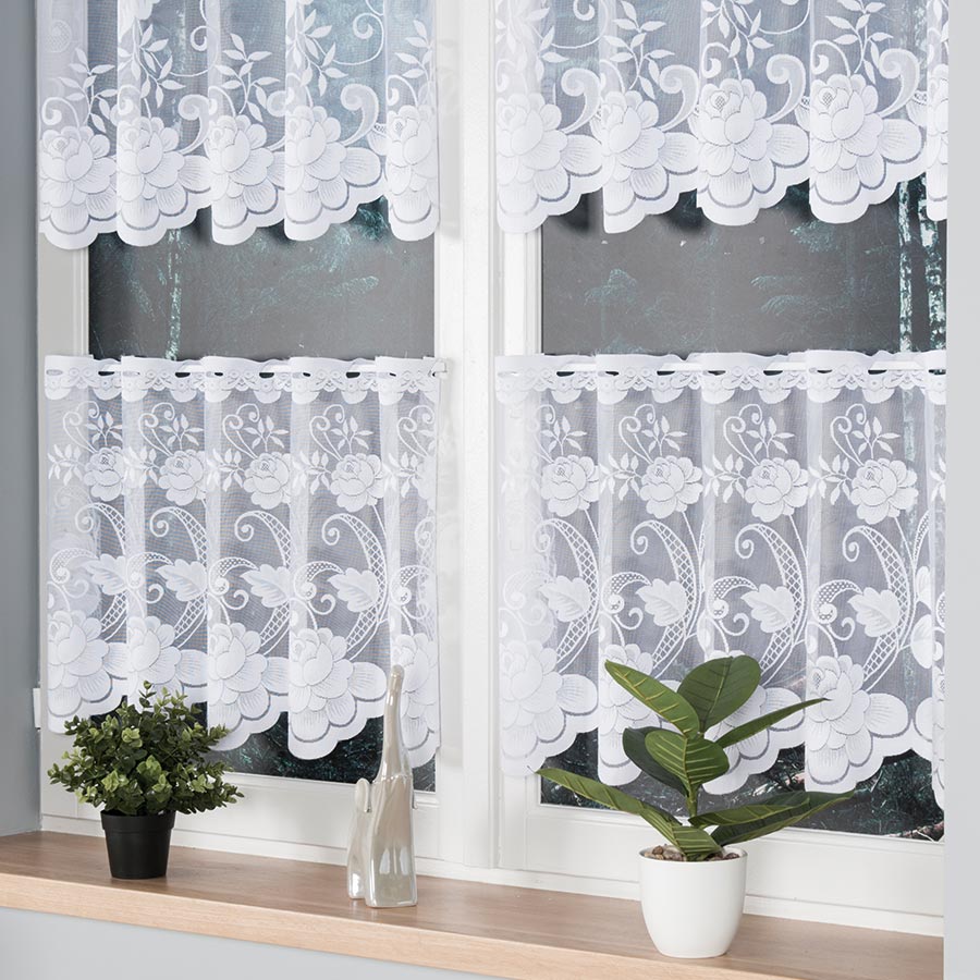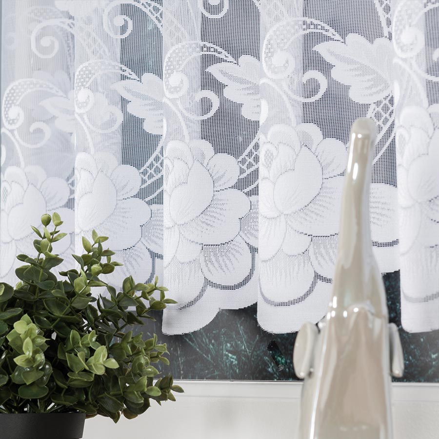 Zazdrostka żakardowa wzór kwiaty 70cm biała