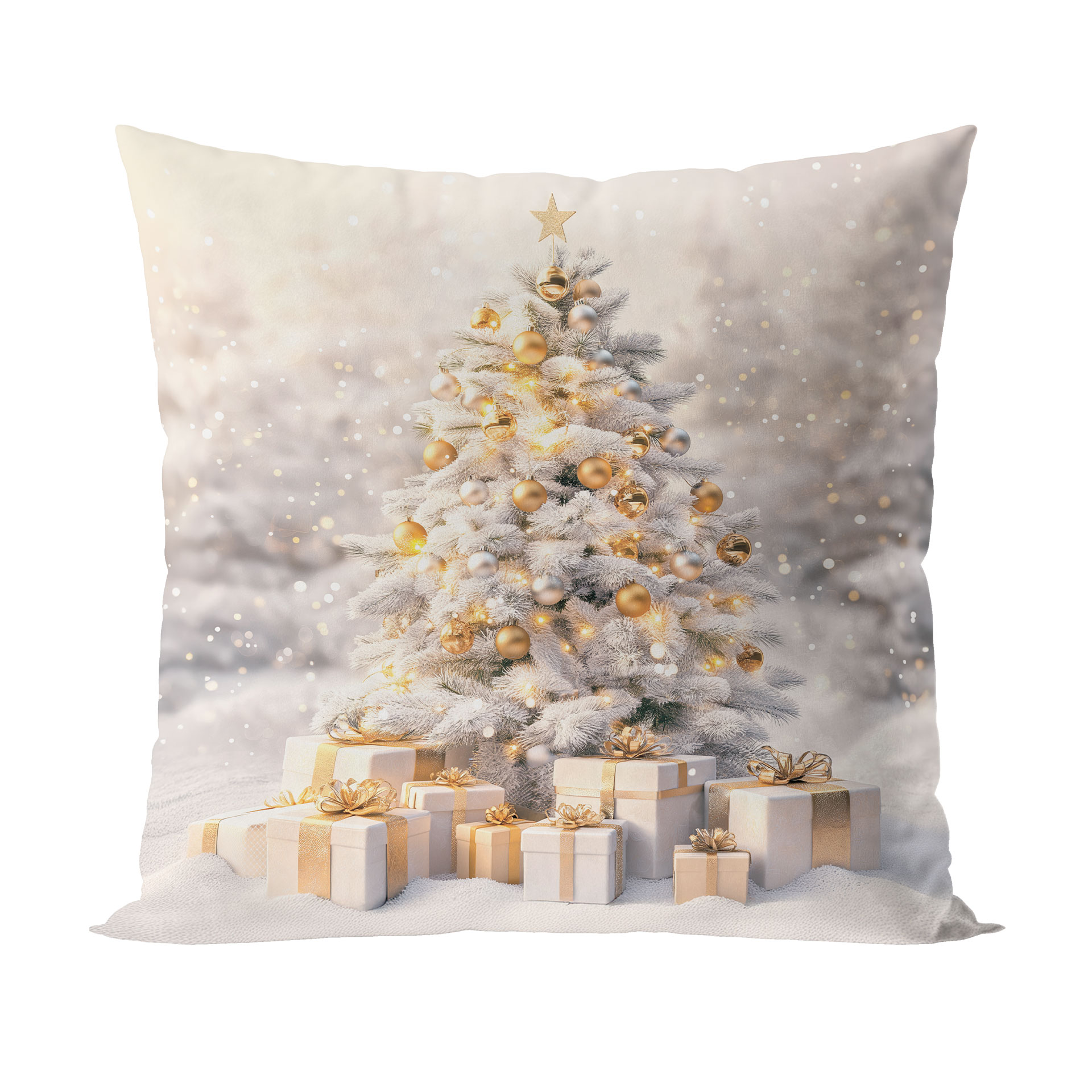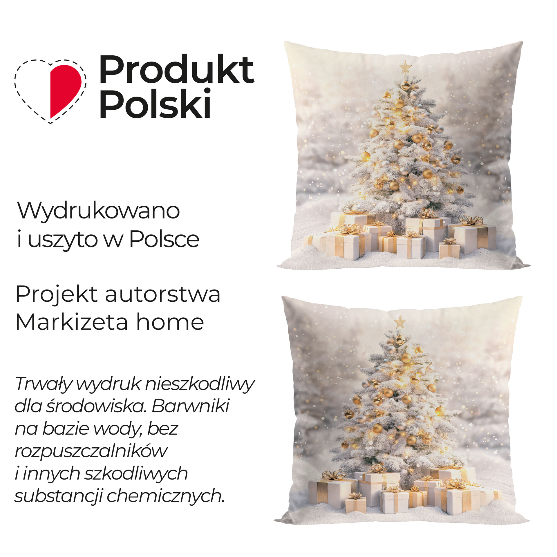 POSZEWKA ŚWIĄTECZNA VELVET ZŁOTA CHOINKA 40x40cm biało-złoty